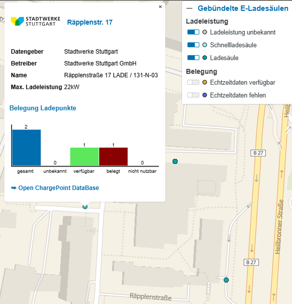 Viele Daten, beispielsweise von der Belegung von Ladesäulen, kommen von den Betreibern der jeweiligen Infrastruktur. Dennoch ist es relevant, auch diese Daten zu erhalten. Statische Daten zu Ladesäulen bezieht MobiData BW vom nationalen Ladesäulen-Register der Bundesnetzagentur. Dynamische Daten mit Informationen zur Verfügbarkeit in Echtzeit stellt der jeweilige Betreiber bereit. Die Stadtwerke Stuttgart waren der erste Energieversorger, dessen Daten MobiData BW in den Datensatz integrieren konnte.